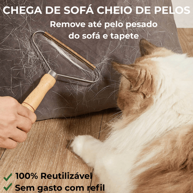 Essa é a escova de cobre tira pelos. Remove os pelos de tecidos, roupas, estofados e muito mais! Versátil: além de pelos, ele também remove fiapos e bolinhas do tecido. Fácil de usar: escove o tecido delicadamente. depois é só remover as bolas de pelo que se formaram. Resistente e reutilizável: a haste é feita de cobre e seu cabo é de madeira. pode usar à vontade!