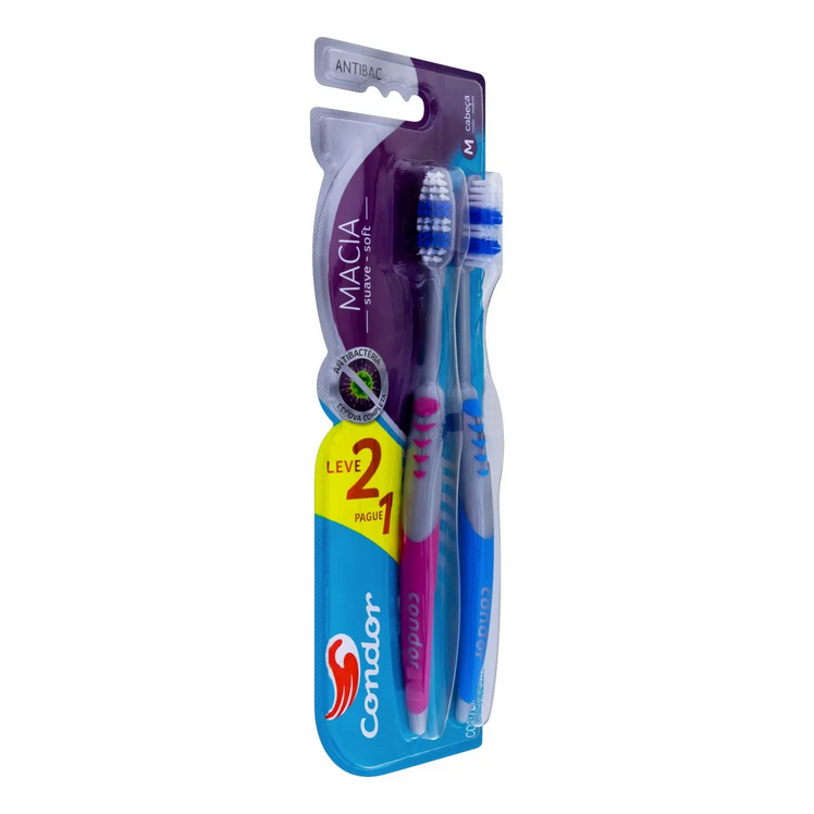 Escova de Dente Antibac, Cerdas Extramacias, Tecnologia Bac Block, Cerdas em Zigue-zague, Condor