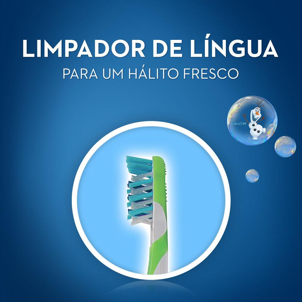 Para pré-adolescentes, com dentição de leite e dentes permanentes. • Cerdas CrissCross: removem efetivamente a placa bacteriana de difícil acesso entre os dentes • Limpador de língua remove bactérias que causam mau hálito • Desenvolvido para que os préadolescente tenham uma melhor técnica de escovação • Indicado para pré-adolescentes • Contém 1 escova dental com o tema Frozen