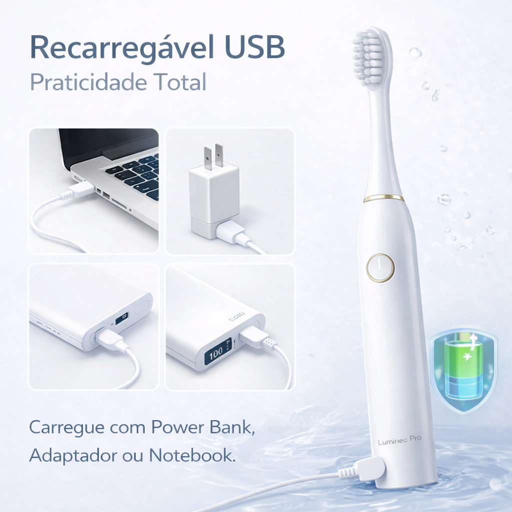 A revolução da escovação que transforma seu sorriso em minutos. Você já percebeu que, mesmo escovando os dentes todos os dias, manchas de café, vinho ou cigarro continuam aparecendo? Escovas comuns não conseguem remover profundamente as placas bacterianas e resíduos acumulados entre os dentes, deixando seu sorriso opaco e sua higiene bucal incompleta. A Lumineo Pro™ foi desenvolvida com tecnologia sônica avançada de 42.000 vibrações por minuto, proporcionando uma limpeza extremamente poderosa e delicada ao mesmo tempo. Com seus 6 modos inteligentes, ela remove impurezas, ajuda a clarear os dentes naturalmente e melhora a saúde da gengiva, oferecendo uma sensação de limpeza profissional todos os dias. Com design moderno, ergonômico e recarregável, a Lumineo Pro™ transforma sua rotina de higiene bucal em uma experiência rápida, prática e muito mais eficiente do que escovas tradicionais. Benefícios da Lumineo Pro™ ✔ 42.000 vibrações por minuto para limpeza profunda ✔ 6 modos inteligentes de escovação ✔ Ajuda a remover manchas e clarear os dentes ✔ Melhora a saúde das gengivas ✔ Remove placa bacteriana com mais eficiência ✔ Design moderno, elegante e ergonômico ✔ Escovação suave, confortável e profissional Especificações Vibração: 42.000 vibrações/minuto Modos de limpeza: 6 modos inteligentes Alimentação: Recarregável via USB Material: ABS resistente + cerdas macias de alta qualidade Ideal para quem deseja: • Dentes mais brancos • Sorriso mais saudável • Melhor higiene bucal • Escovação profissional em casa ⚠ ATENÇÃO: Devido à alta procura, as unidades com desconto de lançamento podem se esgotar a qualquer momento. Garanta agora sua Lumineo Pro™ e descubra o poder de um sorriso mais branco e saudável todos os dias. ✨🦷