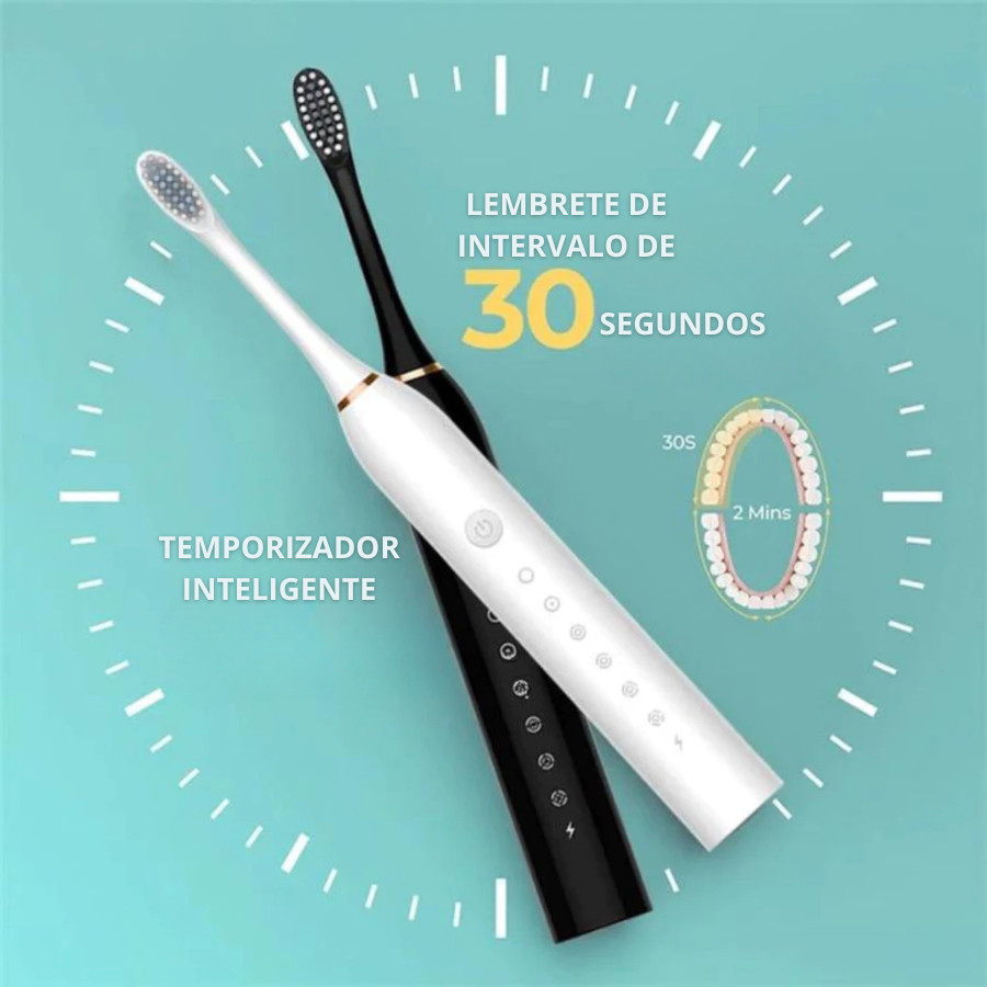 Escova de Dentes Elétrica Recarregável Cabeça Substituivel Inteligente Ultrassônico À Prova D'água