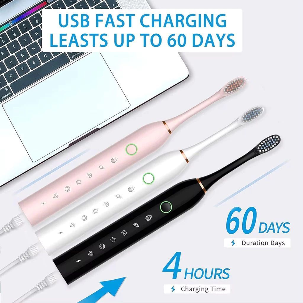 Características: Escova de dentes elétrica com cabeça de substituição Escova de dentes dentada inteligente USB recarregável Dentes limpos Clareamento Sonic fácil de transportar Escova De Dentes Elétrica Para Homens E Mulheres Casal Branqueador IPX7 Dente Ultrassônico À Prova D'água Automática -O Produto possui 5 modos de trabalho -Pressione O interruptor dentro de 5 segundos para alternar o modo de trabalho, pressione e segure por 2 segundos para desligar -Quando A máquina está funcionando, ele lembrará a cada 30S, e ele desligará automaticamente em 2 minutos -Quando A luz indicadora de carregamento pisca, precisa carregá-la. Não se preocupe com a bateria neste momento. Você ainda pode trabalhar por 10 ciclos. Limpe a água na porta de carregamento da escova de dentes elétrica ao carregar. -Método De carregamento: carga direta DC, 5V=2A, carga total em 1-2 horas, tempo de espera 90 dias Tamanho: 220mm * 25mm Material: Plástico Potência: Máx. 1,8 W Precauções: -Antes De usar o produto, por favor leia cuidadosamente este manual do usuário, e mantenha o manual para futura referência. Este produto é adequado para uso por crianças com mais de 6 anos. As seguintes precauções básicas de segurança devem ser seguidas ao usá-lo. Crianças menores de 3 anos são proibidas de usá-lo. Crianças de 4 a 6 precisam de orientação dos pais. -A Cabeça da escova de dentes é recomendada para ser substituída a cada 3 meses -Se Você teve cirurgia oral ou gengiva em 2 meses, consulte seu médico antes de usar este produto. -Se Houver muito sangramento de suas gengivas após usar este produto ou se você ainda sangrar após 1 semana, por favor consulte seu dentista -Este Produto foi projetado apenas para limpar os dentes, gengivas e língua, por favor, não o use para nenhum outro propósito. Se você sentir algum desconforto ou dor, pare de usar este produto e entre em contato com seu médico -Por Favor, pare de usar as cabeças da escova de dentes com cerdas deformadas ou dobradas. Por favor, substitua as cabeças da escova de dentes a cada 3 meses. Se estiverem desgastados, devem ser substituídos com antecedência. -Não Use outras cabeças de escova de dentes não recomendadas pelo fabricante -As Crianças devem ser instruídas ao escovar os dentes até desenvolver bons hábitos de escovação -A Água na porta de carregamento precisa ser limpa ao carregar Incluído no Pacote: 1 x escova de dentes eletrônica sônica 4 x cabeças de escova 1 x Cabo de Carregamento USB 🎁 Presente útil e surpreendente – todo mundo vai querer um depois de ver o seu! 🚚 Frete rápido + Garantia Shopee!