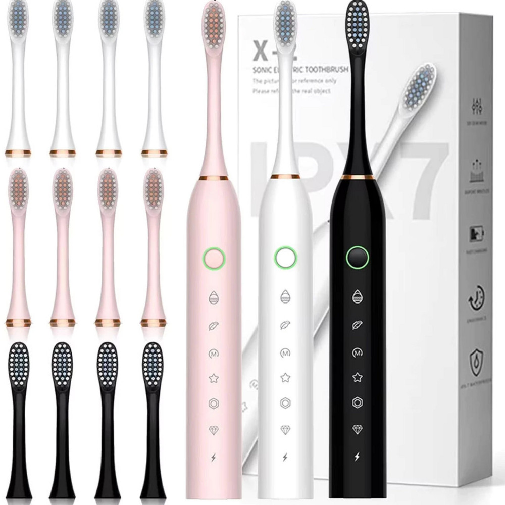 Escova de Dentes Elétrica Sonic Ultrassônica | 5 Modos | IPX7 Impermeável Escova de dentes elétrica inteligente recarregável via USB, com tecnologia sônica para limpeza profunda e clareamento dental. Compacta e fácil de transportar, ideal para uso diário por homens e mulheres. Principais características - 5 modos de limpeza inteligentes - Troca de modo com toque rápido; desligamento ao segurar 2s - Alerta a cada 30s + desligamento automático em 2 minutos - Impermeável IPX7, lavável de forma segura - Carga rápida em 1–2 horas, autonomia de até 90 dias - Luz indicadora de bateria baixa (ainda funciona por 10 ciclos) - Cabo USB incluso, carregamento prático - Material resistente, design ergonômico Conteúdo da embalagem - 1 unidade escova de dentes elétrica sônica - 4 cabeças de reposição - 1 cabo de carregamento USB Informações importantes - Troca recomendada da cabeça a cada 3 meses - Uso supervisionado para crianças de 4 a 6 anos; proibido para menores de 3 anos - Impermeável, limpe a porta de carregamento antes de ligar - Imagens meramente ilustrativas, cores podem variar conforme tela - Produto a pronta entrega
