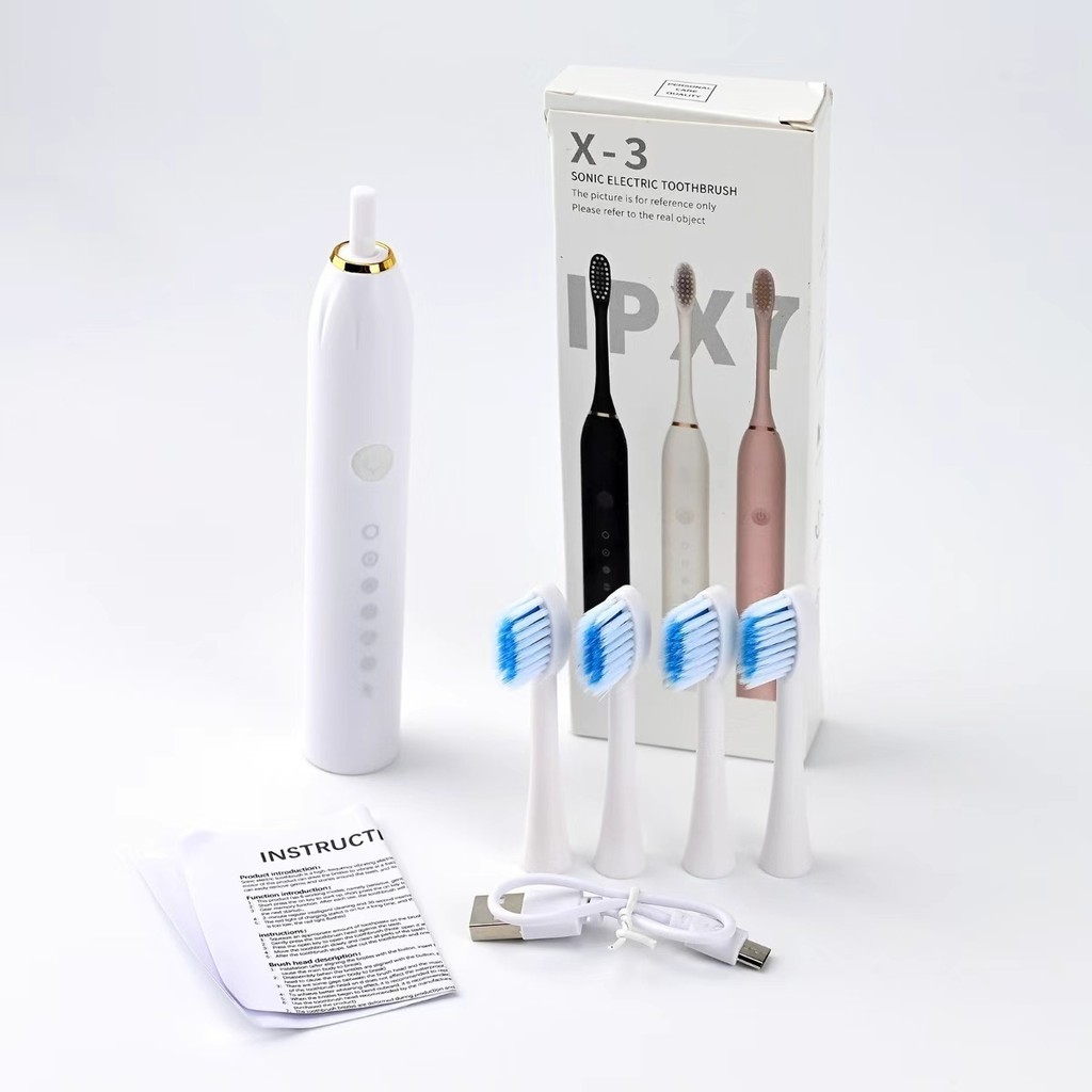 Escova de Dentes Elétrica Sônica X-3 | 6 Modos | Recarregável USB | 4 Cabeças Extras | IPX7 | 213 mm ming