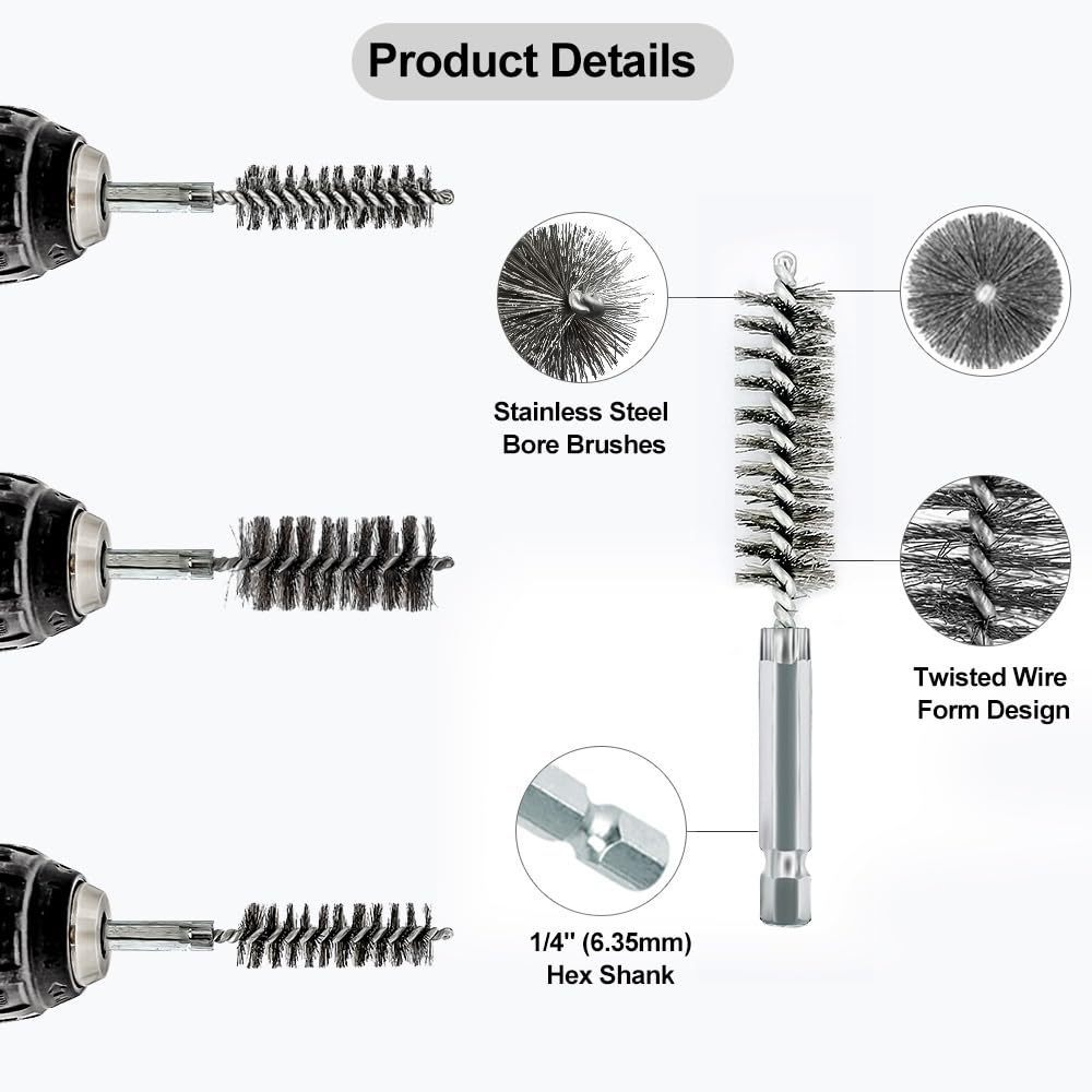Escova De Furo De Aço Inoxidável 6PCS , Hexagonal de 1/4 Tamanhos Diferentes 8/10/12/15/17/19MM Arame Com Cerdas