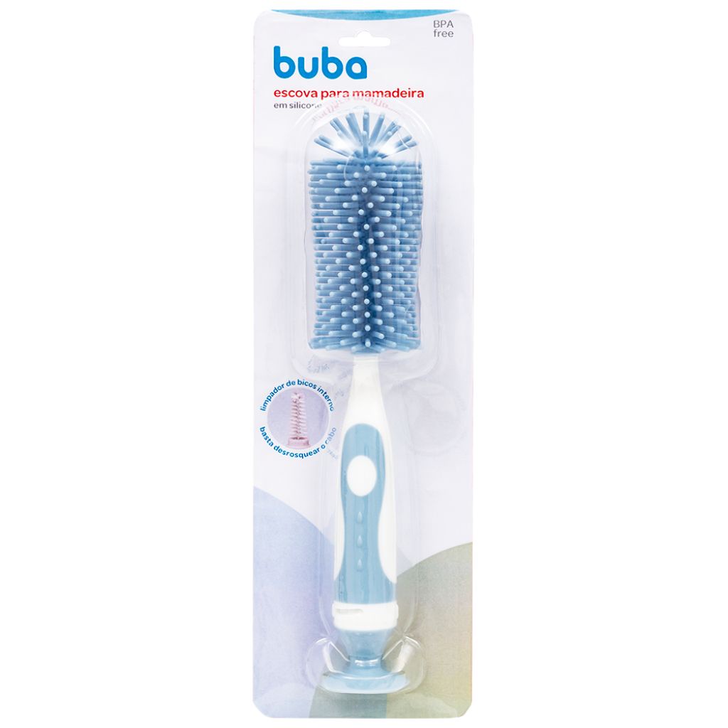 Escova de Lavar Mamadeira Cerdas Silicone Azul Limpador de Bicos 16275 Buba