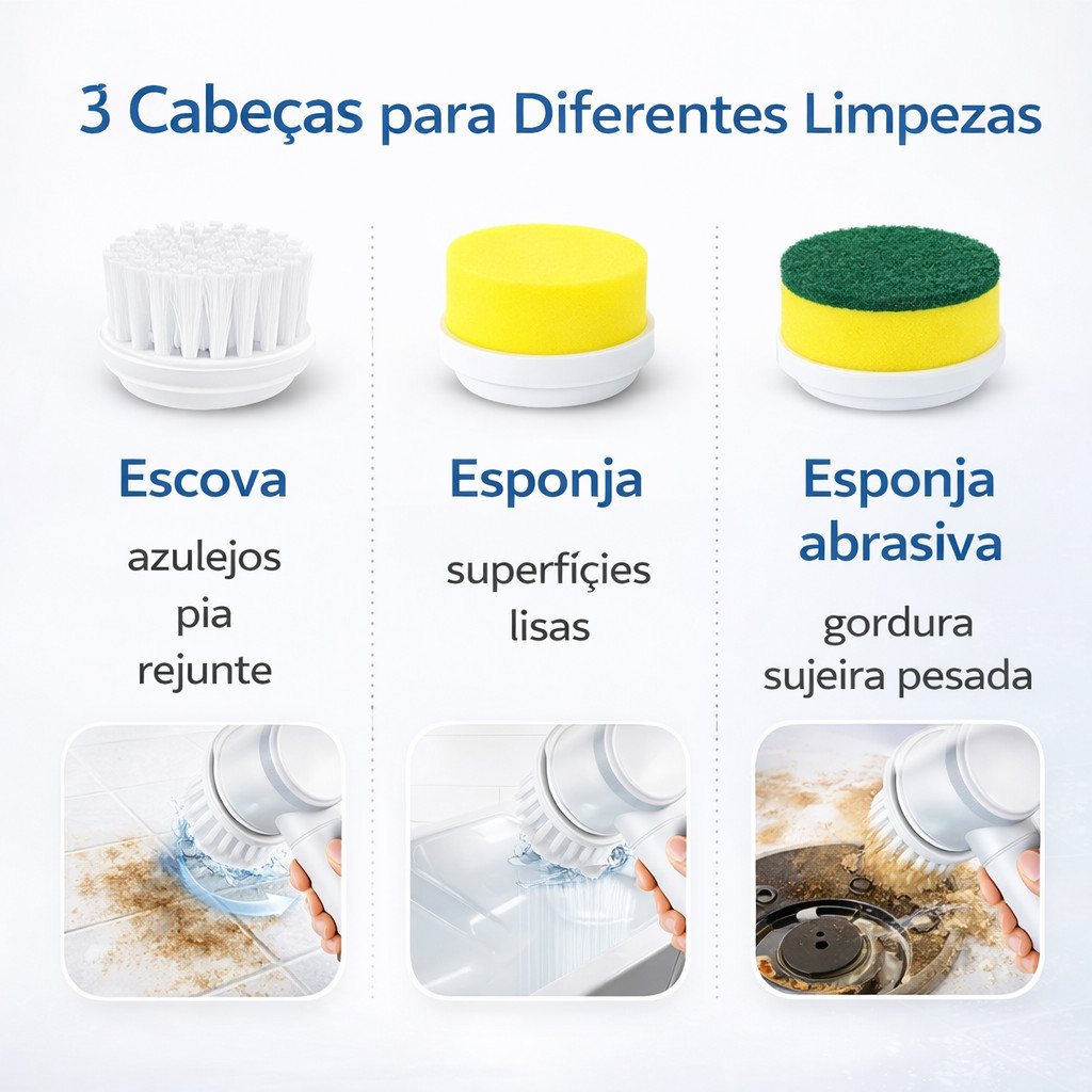 Escova de Limpeza Elétrica 5 em 1 Recarregável USB para Cozinha Banheiro Pia Azulejo e Fogão