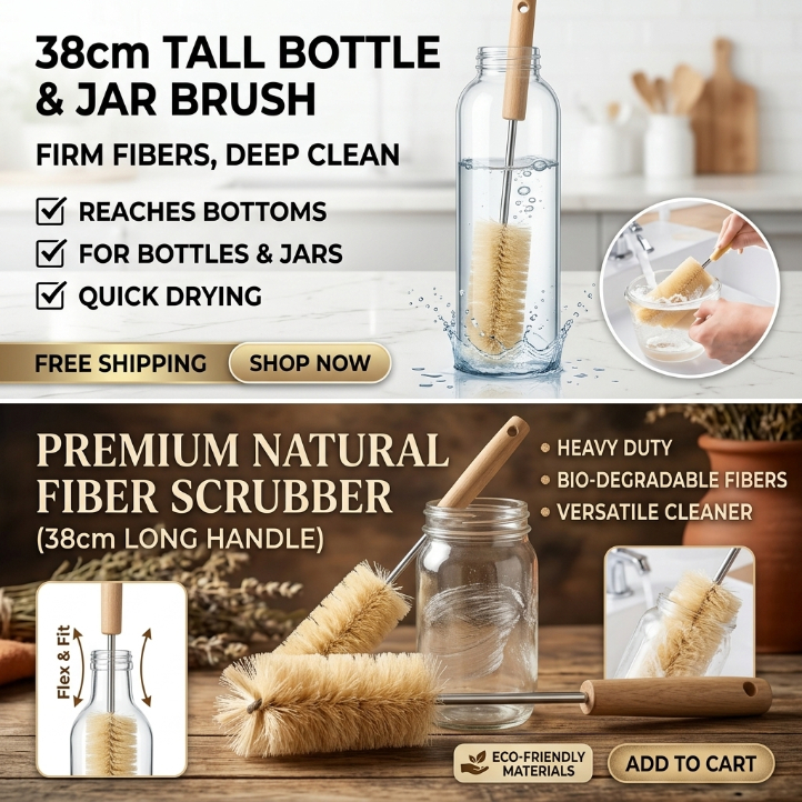 Escova de Limpeza Multiuso 38cm – Ideal para Garrafas, Copos e Vidros! Perfeita para alcançar áreas internas que outras escovas não chegam, essa escova comprida facilita a limpeza de garrafas, jarras, copos, decanters e recipientes com boca estreita. Seu cabo longo e firme garante alcance total até o fundo, enquanto as cerdas removem resíduos com facilidade, sem riscar o material. Possui gancho para pendurar e deixar sempre à mão, economizando espaço na cozinha ou lavanderia. Além disso, é totalmente reutilizável: basta lavar à mão ou colocar na lava-louças para usar novamente. ⭐ Principais vantagens Alcança fundos e cantos difíceis Ideal para garrafas com gargalo estreito Cerdas firmes e resistentes Não risca copos, vidros e acrílicos Cabo longo de fácil manuseio Possui gancho para pendurar Fácil de lavar e reutilizar Indicado para: Garrafas de água Garrafas térmicas Copos grandes Jarras Decanters Vidro, plástico, acrílico e inox Especificações • Material: Nylon + aço • Cor: Conforme imagens • Comprimento total: 38cm Conteúdo da embalagem • 01 Escova de limpeza multiuso