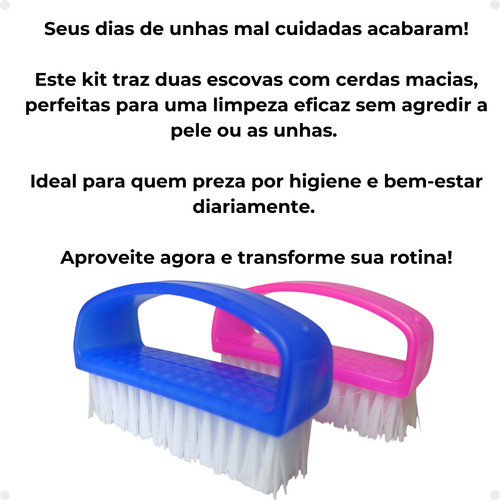 Seus dias de unhas mal cuidadas acabaram! Este kit traz duas escovas com cerdas macias, perfeitas para uma limpeza eficaz sem agredir a pele ou as unhas. Ideal para quem preza por higiene e bem-estar diariamente. Aproveite agora e transforme sua rotina! Benefícios do Produto *Higiene e Saúde: Cerdas macias que garantem uma limpeza eficaz e delicada, evitando danos às unhas e à pele ao redor. *Praticidade no Dia a Dia: Ideal para manter as unhas limpas com facilidade em qualquer ambiente, seja em casa ou no trabalho. *Durabilidade e Economia: Produto resistente e de longa duração, oferecendo ótimo custo-benefício para o usuário. Especificações do Produto: Contém: 2 escovas. Cerdas: Macias e resistentes. Material do corpo: Plástico leve e durável. Dimensões: 6,9 x 2,3 x 4,3cm (aproximadamente). Garanta já o seu! Não fique de fora dessa oferta exclusiva! Obrigado por visitar a Agropecuária Recanto! Agradecemos a confiança e estamos prontos para oferecer os melhores produtos para você e o seu pet. Volte sempre e conte com a gente!