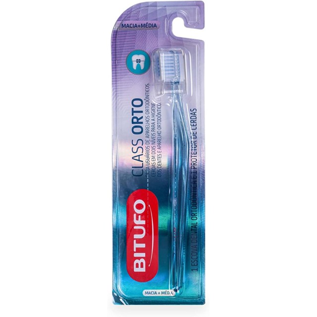 Escova Dental Bitufo Class Orto Macia+Média com 1 unidade + 1 protetor de cerdas