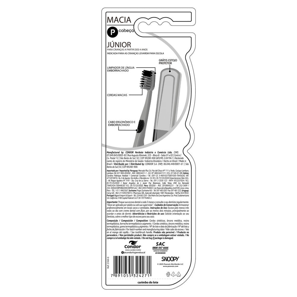 Escova Dental Infantil Condor Snoopy Macia + Grátis Estojo Protetor