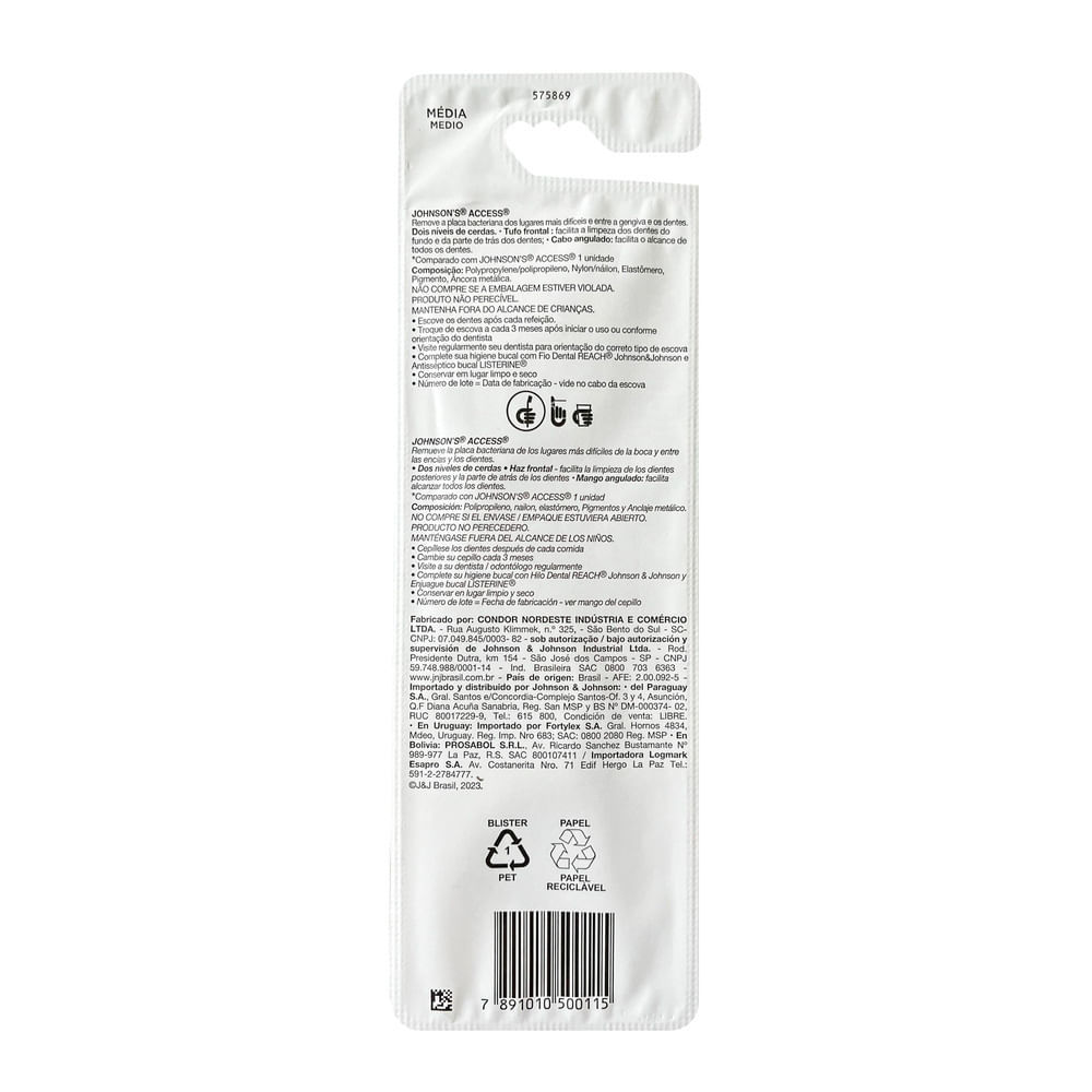 Escova Dental Johnson's Reach Access Média 40 Cabeça Grande Cores Sortidas Leve 2 Pague 1