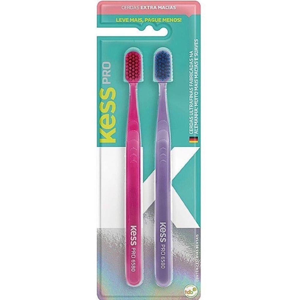 Escova Dental Kess Pro Extra Macias com 2 Unidades - Escova Dental Kess Pro Extra Macias com 2 Unidades é equipada com cerdas ultrafinas e especiais, fabricadas com material de alta qualidade da Alemanha. Essas cerdas são projetadas para reduzir a força excessiva durante a escovação, minimizando o impacto nas gengivas. Com cerdas extra macias e ultrafinas, a escova oferece um conforto superior na limpeza e é gentil com as gengivas.
