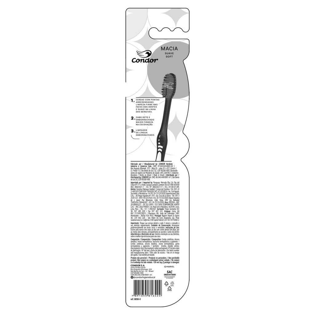 A Escova Dental Macia Capitão América vem em uma embalagem com 2 unidades. Suas cerdas possuem pontas arredondadas que garantem limpeza firme nas faces dos dentes e suave na linha das gengivas. Com cabo reto e emborrachado que oferece maior firmeza e limpador de língua.