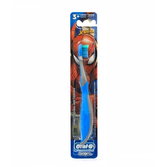 Escova de dentes Infantil Homem-Aranha Spiderman Oral-b Stages Atenção cor aleatória, enviada de acordo com a disponibilidade em estoque * Possui cabeça compacta com bordas protetoras especialmente projetada para a boca pequena e as gengivas frágeis das crianças.* Possui cerdas de longo alcance (Power Tip) desenhadas para ajudar a limpar os dentes posteriores.* Cerdas coloridas (Indicator) que ajudam a medir a quantidade recomendada de creme dental e indicam o momento da troca da escova.* Cerdas extramacias com desenho côncavo para envolver e limpar os dentes com suavidade.* Cabo anatômico para porporcionar maior segurança e controle durante a escovação.