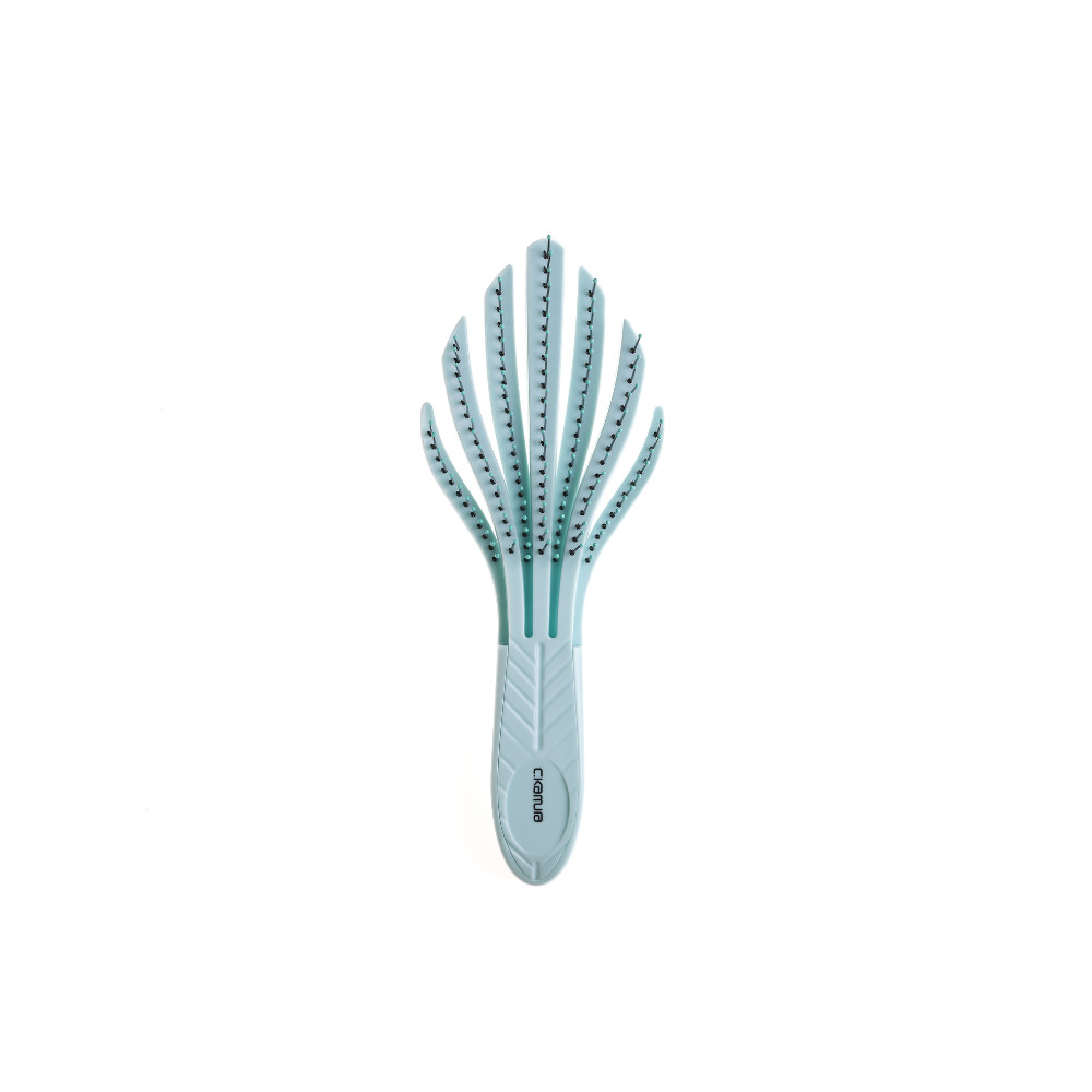Escova Desembaraçante C.Kamura Árvore: Tecnologia e Cuidado A Escova Árvore C.Kamura apresenta um dos designs mais modernos do mercado para o cuidado diário dos fios. Seu formato exclusivo em "folhas" ou "árvore" não é apenas estético: as cerdas flexíveis e a base vazada permitem que a escova se molde perfeitamente ao formato do couro cabeludo, distribuindo a pressão de forma equilibrada para um desembaraço sem dor. Diferenciais Estratégicos: Corpo Flexível e Anatômico: As hastes independentes se movem conforme você escova, massageando o couro cabeludo e desembaraçando nós com suavidade. Redução de Quebra e Tração: Ideal para cabelos frágeis ou sensibilizados por processos químicos, pois não "puxa" o fio bruscamente. Escovação Rápida e Eficaz: O grande espaçamento entre as cerdas e o corpo vazado permitem uma melhor circulação de ar, sendo excelente para usar também durante a secagem com secador. Leveza e Ergonomia: O cabo foi desenvolvido para oferecer conforto e total controle, tornando a rotina de cuidados muito mais prazerosa. Dica do Especialista C.Kamura: "A Escova Árvore é perfeita para quem tem couro cabeludo sensível. Comece sempre escovando pelas pontas e vá subindo gradualmente até a raiz. Como ela é anatômica, você sente o acessório abraçando a cabeça, o que transforma o ato de pentear em uma massagem relaxante que estimula a circulação local." Especificações do Produto: Marca: C.Kamura Modelo: Escova Desembaraçante Árvore (Leaf Design) Cor: Azul Pastel / Acqua Indicação: Todos os tipos de cabelo, especialmente os delicados e com tendência a nós.