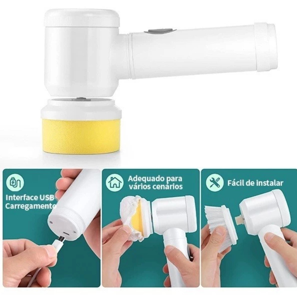 Escova Elétrica de Limpeza 5 em 1 Sem Fio USB c/ 5 Cabeças Multiuso Banheiro Cozinha