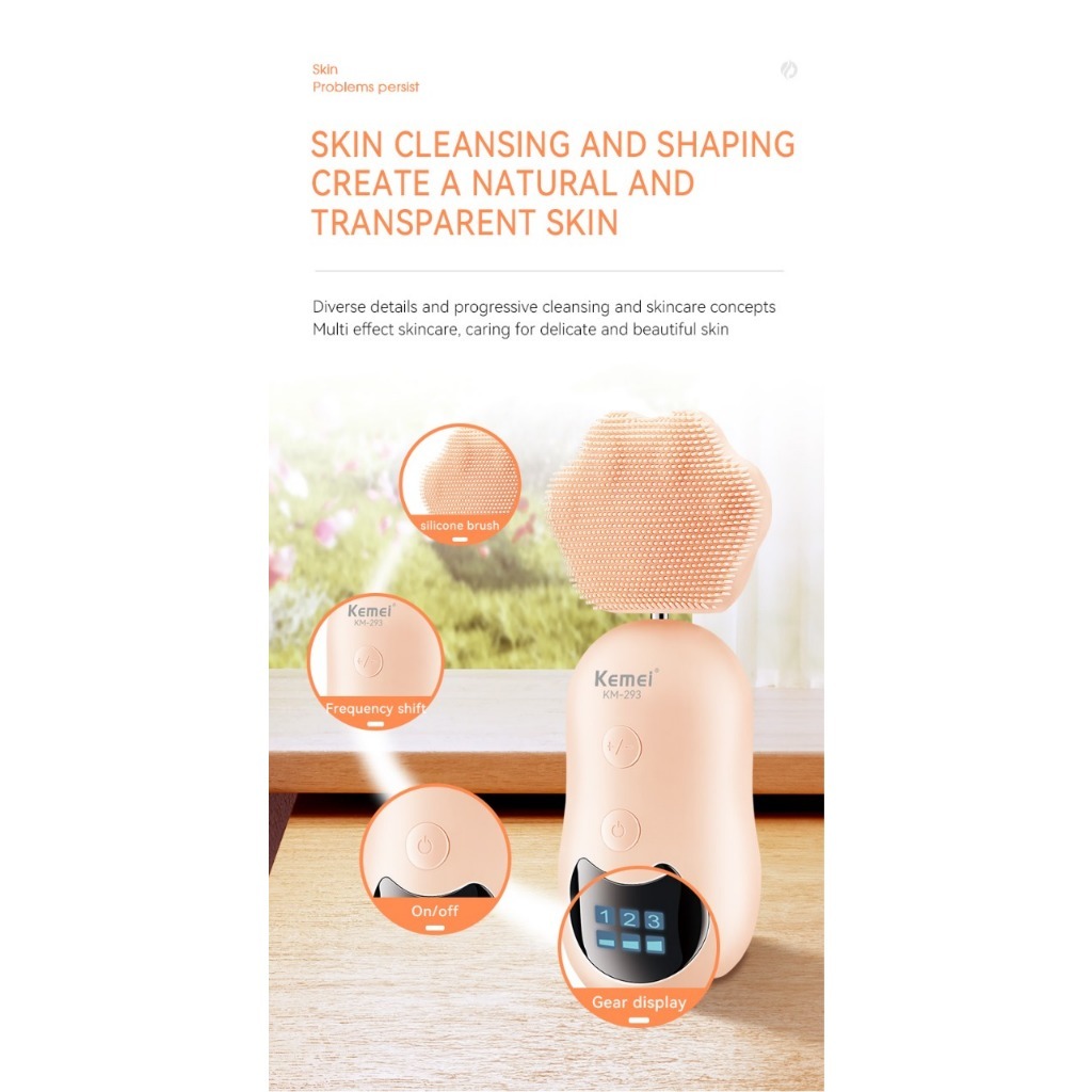 Escova Elétrica Limpeza Facial Kemei - 293 e Massageador Prova d Água Kemei Km-293 Unisex Portátil