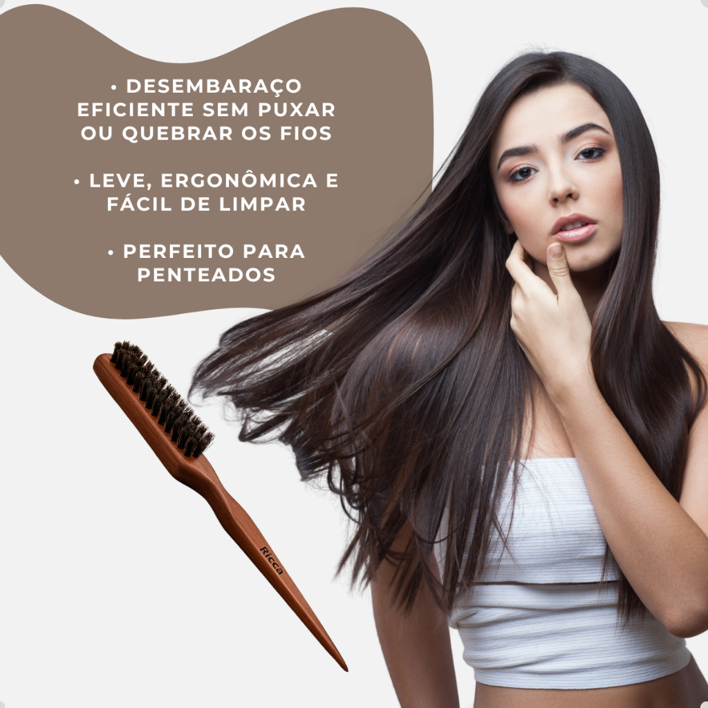 Escova Fina para Acabamento Vertix 248 A Escova Fina para Acabamento Vertix 248 é a aliada perfeita para quem busca precisão e acabamento profissional nos penteados. Ideal para alisar fios rebeldes, modelar topetes e definir coques ou penteados presos com acabamento impecável. Diferenciais e Benefícios: Cerdas Naturais: Possui cerdas firmes que alinham os fios sem danificá-los, oferecendo controle e brilho natural ao cabelo. Formato Fino e Alongado: Facilita o manuseio e proporciona maior precisão em áreas pequenas ou próximas à raiz. Cabo em Madeira com Ponta Fina: Além de ergonômico, o cabo pontiagudo é excelente para separar mechas e criar divisões precisas durante o penteado. Acabamento Profissional: Ideal para uso tanto em casa quanto em salões, oferecendo resultado digno de cabeleireiro. Modo de Uso: Utilize a ponta fina do cabo para separar mechas com precisão. Com as cerdas, alise e modele os fios rebeldes, finalizando penteados com elegância e firmeza. Indicado para: todos os tipos de cabelo, especialmente em penteados presos, coques, tranças e finalizações que exigem alinhamento dos fios.