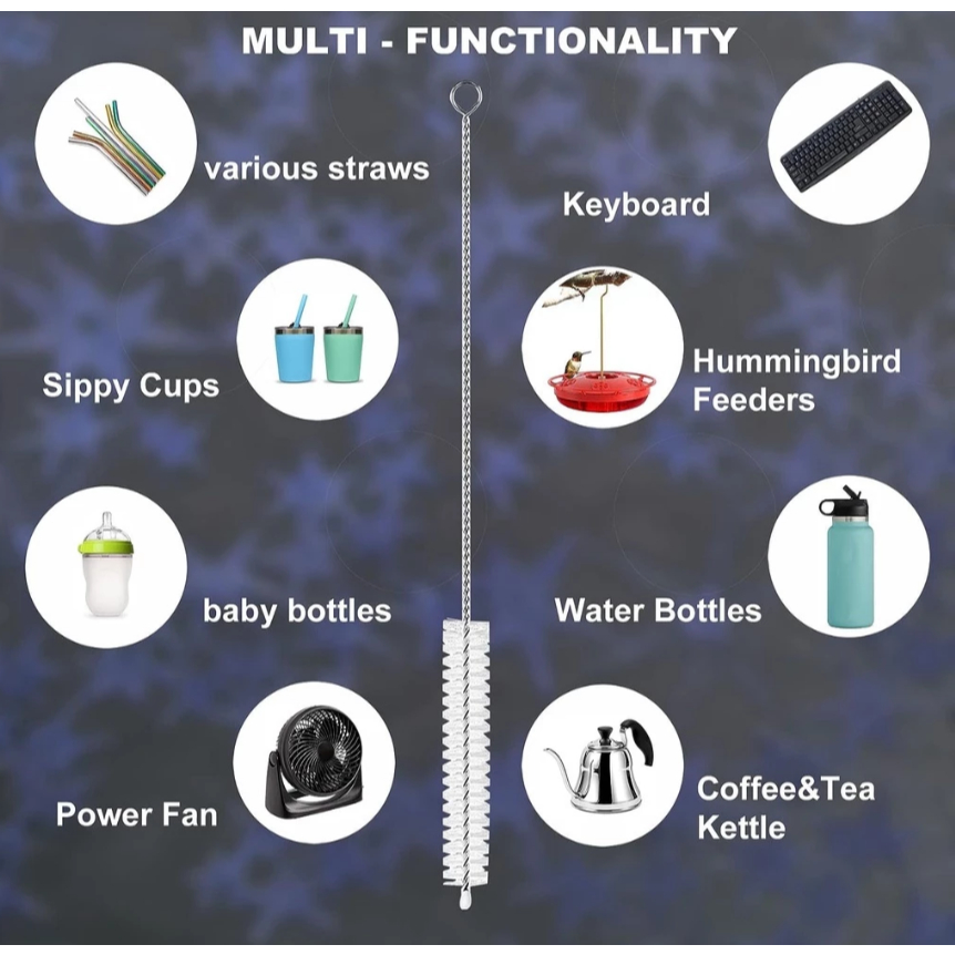 Escova Flexível para Limpeza Canudo Curto e Longo em Aço Inox Ecológico Ótima para manter a higiene interna dos seus canudos curtos e longos sempre em dia! Ideal para todos os tipos de canudos curtos e longos de copos e garrafas. Modelo: Longo Flexível Espessura: 1cm Largura: 22cm Material: Aço galvanizado com cerdas em Nylon