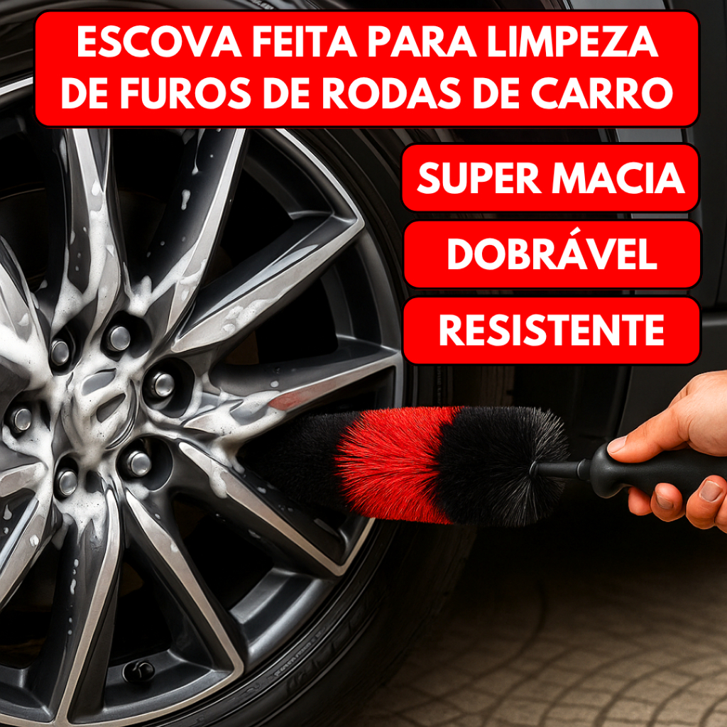 Escova Furo de Roda Lavagem de Carro Automotiva Limpeza Detalhamento Automotivo