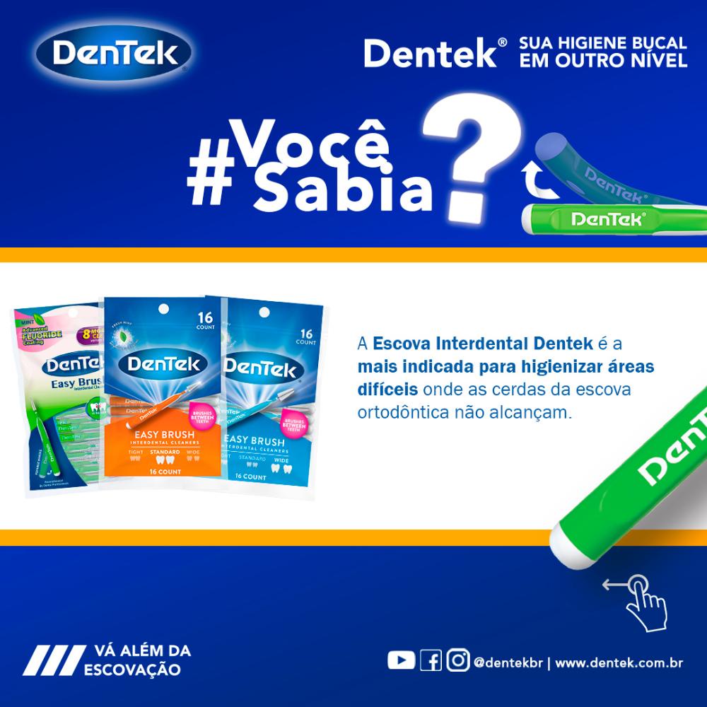 Escova Interdental Dentek Easy Brush Padrão com 16 unidades Nossas escovas interdentais fornecem uma limpeza profunda entre os dentes e possuem um revestimento de MENTA & FLÚOR garantindo sensação de limpeza e frescor. É ideal para ajudar na limpeza diária dos dentes. Cabo anatômico e cônica, um design inteligente que facilita o uso e ajuda a combater de maneira eficaz a placa bacteriana. Uma opção prática para quem faz tratamento ortodôntico, no qual é difícil alcançar todos os espaços dos dentes com uma escova comum. - O fio flexível permite que as cerdas dobrem para melhor acesso; - A haste flexível mantém a posição quando dobrada; - A tampa antimicrobiana ajuda a manter a escova limpa entre os usos e se encaixa na mão; *Compre produtos Dentek.