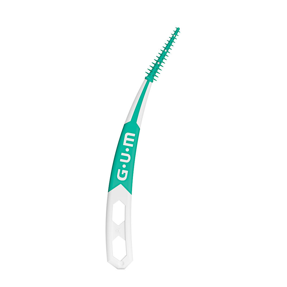 ESCOVA INTERDENTAL GUM SOFT-PICKS ADVANCED Ideal para uso em aparelhos ortodônticos, implantes, pontes e coroas. Palitos interdentais de borracha com design curvo que são adaptados que acompanham o fo