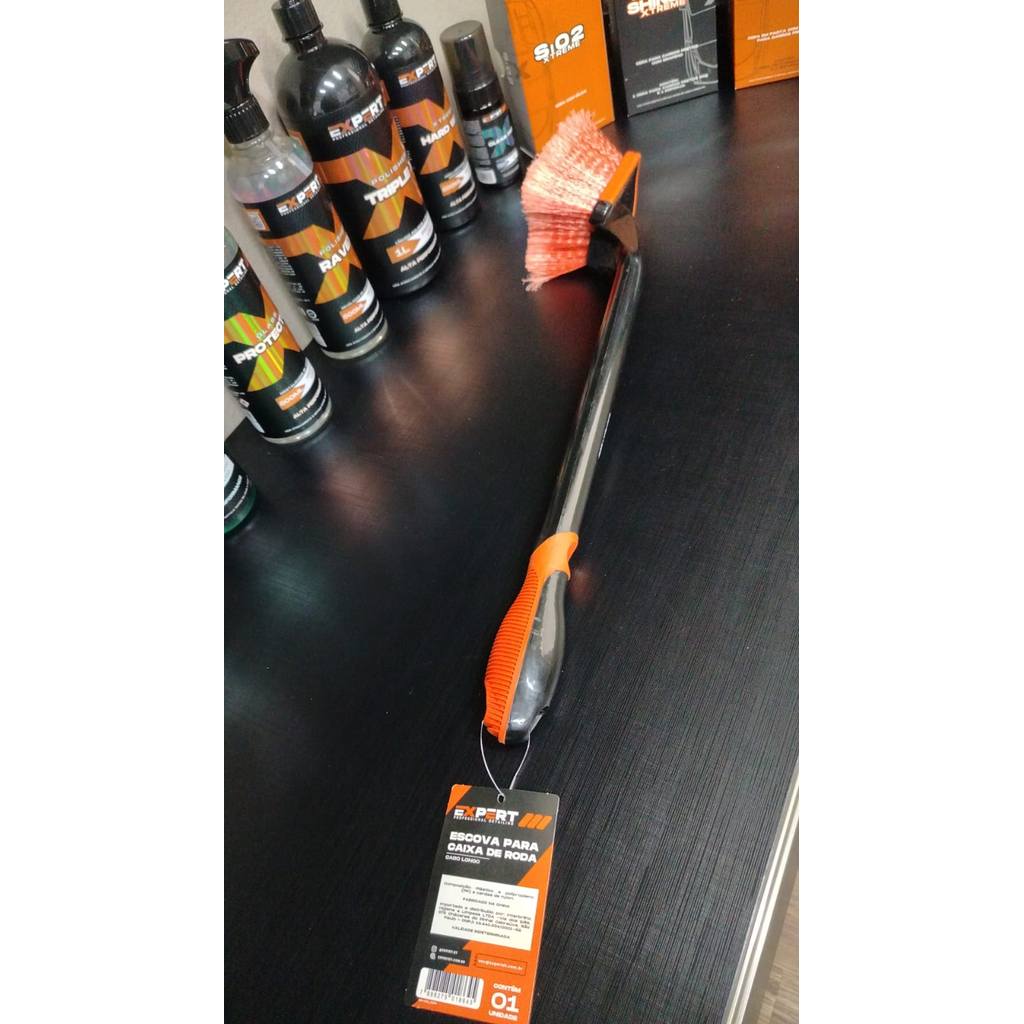 Escova Longa para Limpeza de Caixa de Rodas EXPERT Desenvolvida para profissionais e entusiastas que exigem máxima eficiência na manutenção automotiva, a Escova Longa EXPERT é a solução definitiva para a limpeza profunda de caixas de roda e áreas de difícil acesso. CARACTERÍSTICAS PRINCIPAIS: CABO LONGO E AJUSTÁVEL: Comprimento estendido de 45cm que permite alcançar profundamente dentro das caixas de roda sem necessidade de agachamento excessivo ou remoção do pneu. CERDAS TECNOLÓGICAS: Mistura estratégica de fibras duras e macias que removem eficazmente lama compactada, resíduos de freio, sal de estrada e sujeira acumulada sem danificar a pintura ou superfícies. DESIGN ERGONÔMICO: Cabo antiderrapante com ângulo otimizado que oferece controle preciso e reduz a fadiga durante o uso prolongado. RESISTÊNCIA QUÍMICA: Compatível com todos os tipos de produtos de limpeza automotiva, shampoos, desengraxantes e até solventes industriais. CABEÇA MODULAR: Sistema de encaixe que permite substituir apenas o refil de cerdas quando necessário, tornando-a uma solução econômica a longo prazo. APLICAÇÕES: Limpeza profunda de caixas de roda e passagens de ar Remoção de resíduos de freio (poeira metálica) Limpeza de juntas, dobradiças e áreas de difícil acesso em veículos Manutenção de maquinário agrícola e industrial Preparação de superfícies para aplicação de proteções (cerâmicas, selantes) BENEFÍCIOS: PREVENÇÃO DE CORROSÃO: Remove agentes corrosivos que se acumulam nas caixas de roda PRECISÃO: Permite limpeza minuciosa em espaços confinados DURABILIDADE: Construção em materiais de alta resistência para uso profissional VERSATILIDADE: Apropriada para oficinas mecânicas, centros de detailing automotivo e uso doméstico exigente ESPECIFICAÇÕES TÉCNICAS: Comprimento total: 45cm Material do cabo: Polipropileno reforçado Tipo de cerdas: Nylon/poliéster misto Cores disponíveis: Preto/vermelho (cabo) e amarelo (cerdas) A Escova Longa EXPERT é a ferramenta essencial para quem valoriza manutenção preventiva e resultados profissionais. Experimente a diferença de uma limpeza completa onde outros produtos não alcançam.