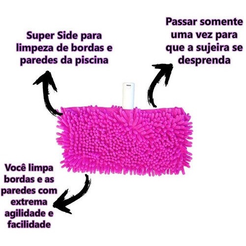 !!!PRODUTO DISPONÍVEL PARA PRONTA ENTREGA!!! !!!PRODUTO ORIGINAL IGUI!!! Você não irá mais se preocupar se as extremidades da sua piscina continuará suja, com a Super Side para limpeza de bordas e paredes da piscina, ficou extremamente fácil e ágil realizar a limpeza, pois é necessário passar somente uma vez para que a sujeira se desprenda. Também conta com a praticidade de poder ser lavado na sua máquina de lavar, tornando assim seu dia a dia mais facil. Trabalhamos com toda a linha de produtos IGUI e Splash, precisando de alguma pea especifica ou material de reposição só perguntar neste anuncio mesmo. Produto compatível com: Cabo de alumínio