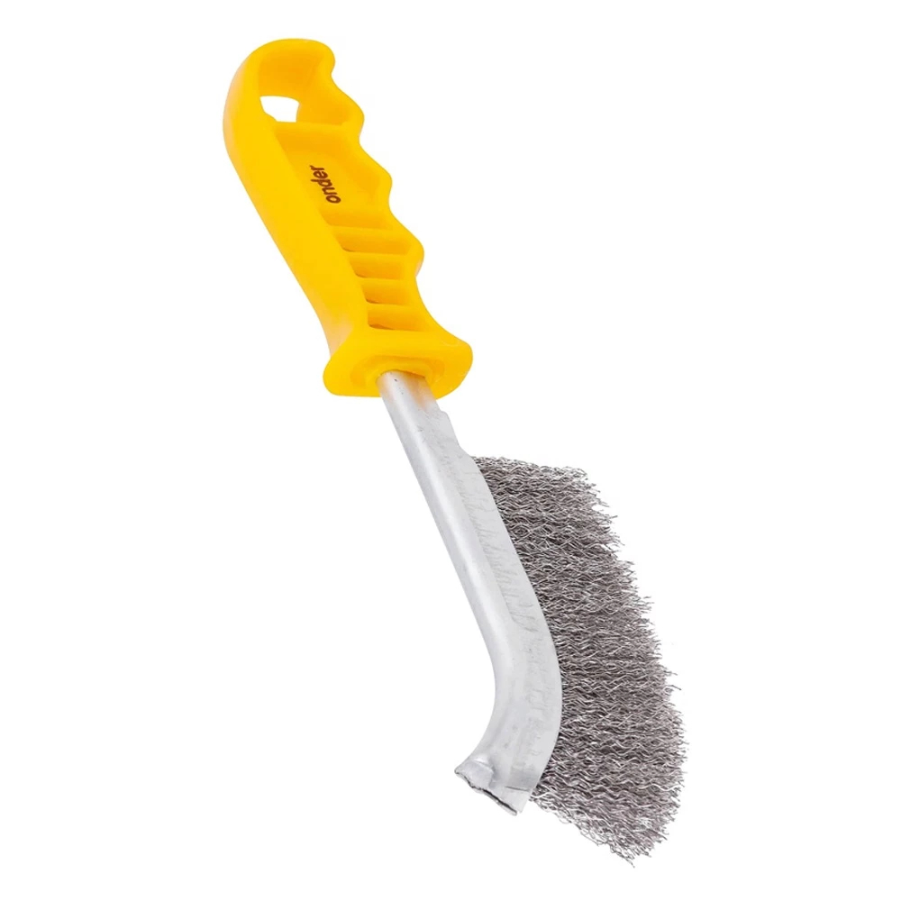 Escova Manual com Cerdas de Aço Vonder 3599030001 Descrição do Produto: - A Escova Manual com Cerdas de Aço Vonder Possui maior poder de remoção, e é a mais indicada para limpeza de peças em geral. Dados Técnicos: - Material/acabamento das cerdas da escova: Aço carbono/polido; - Material do cabo da escova: Plástico; - Material da base: Metal; - Nº de fileiras de cerdas: 1; -Peso: 0,011 kg. Componentes Inclusos na Embalagem: - 01 Escova Manual com Cerdas de Aço Vonder 3599030001..