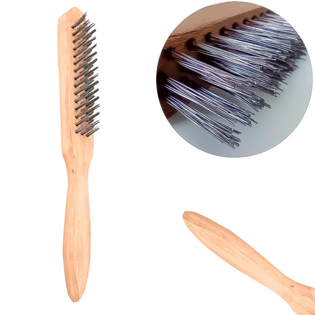 Escova Manual De Aço Carbono Com Cabo Madeira Para Metal Solda Ferrugem Multiuso