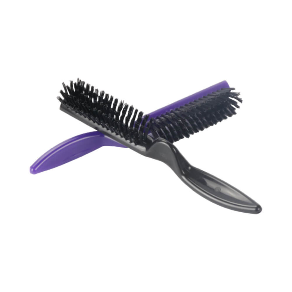 Escova com cabo em resina plástica e cerdas em BPT, com cinco fileiras de cerdas, ideal para fazer penteados e assentar raízes crespas. Dimensões: Comprimento: 20,5cm Largura: 2,3cm Altura: 3,3cm.