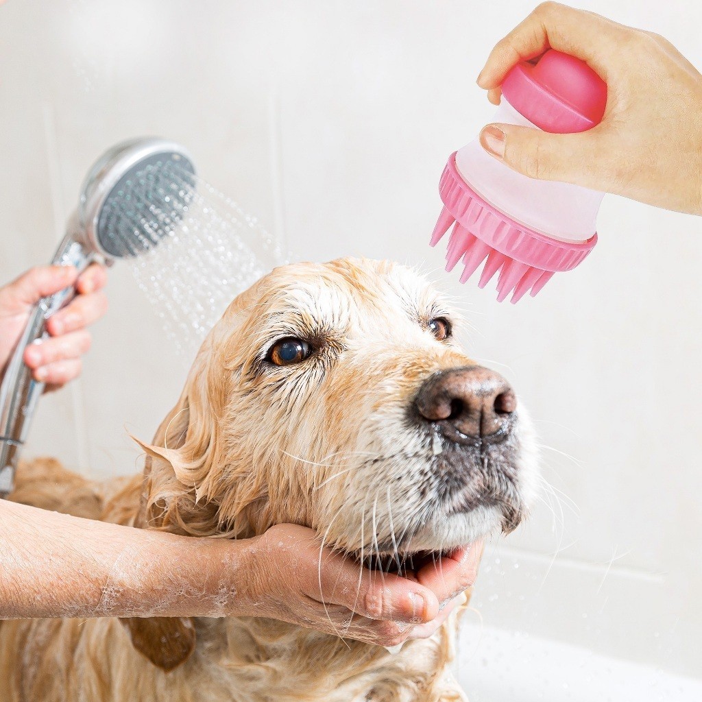 Escova Massageadora De Banho Para Pet Com Dispenser De Shampoo Silicone - A741
