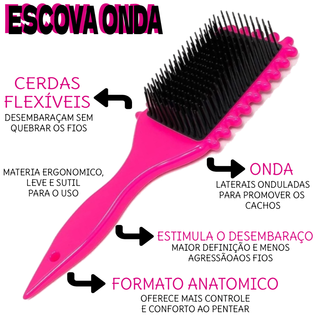 Escova Onda – Definição & Fitagem A ferramenta perfeita para quem tem cabelos ondulados, cacheados ou crespos e busca cachos definidos, alinhados e com menos frizz. Benefícios: - Definição incrível: perfeita para a técnica de fitagem, separa mechas com precisão. - Cerdas flexíveis: deslizam facilmente pelos fios, sem puxar ou quebrar o cabelo. - Versatilidade: pode ser usada em cabelos molhados ou secos. - Reduz o frizz e distribui melhor o creme de pentear. - Material resistente: durabilidade garantida para o dia a dia. Especificações: - Material: Plástico de alta qualidade - Cerdas: Flexíveis e resistentes - Altura aproximada: 20 cm - Indicação: cabelos ondulados, cacheados e crespos Transforme sua finalização em um verdadeiro ritual de beleza e conquiste cachos definidos, macios e com brilho natural!