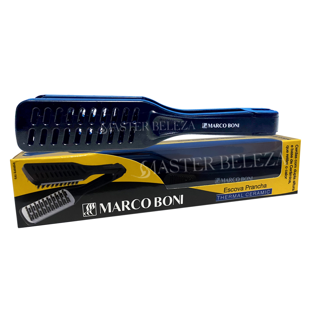 Escova Prancha Thermal Ceramic A escova prancha é um auxiliar de beleza que pode ser usado para ajudar a alisar e modelar os cabelos de forma prática e rápida. Ela possui cerdas de nylon e placas de cerâmica que distribuem o calor de maneira uniforme, evitando danos aos fios. É importante lembrar que é apenas uma escova auxiliar que ajuda em sua segurança para não obter queimadura ao pranchar o cabelo, apesar da praticidade, o uso constante da escova juntamente com sua prancha pode ressecar e danificar os cabelos, por isso é recomendado utilizar protetores térmicos e evitar o uso frequente. - Composição: Plástico, cerdas naturais, nylon, cerâmica. - Atenção: Escova não elétrica. Contém: 1 Escova Ref 7963