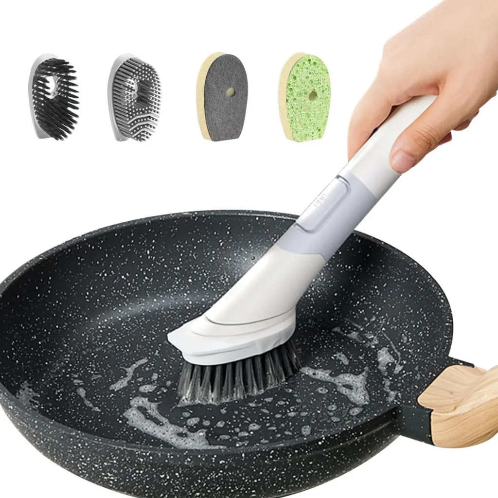 Escova para Panela com 4 Cabeças Intercambiáveis, Armazenamento de Limpeza no Cabo e Design Suspenso Ideal para Cozinha