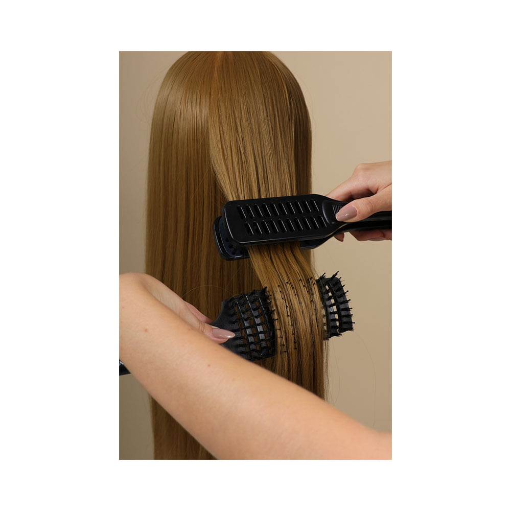 ESCOVA PRANCHA MARCO BONI CERÂMICA DUPLA ALTURA =============================================== A Escova Prancha Marco Boni Cerâmica Dupla Altura é uma ferramenta inovadora que combina a praticidade de uma prancha e a eficiência de uma escova. Ela proporciona resultados profissionais ao alisar e modelar o cabelo, reduzindo o tempo necessário para o styling diário. A escova possui revestimento em cerâmica para distribuição uniforme do calor, garantindo fios brilhantes e sem frizz. O cabo ergonômico oferece conforto durante o uso, facilitando a estilização dos cabelos de forma prática. REVESTIMENTO EM CERÂMICA A escova possui revestimento em cerâmica para distribuição uniforme do calor, garantindo fios brilhantes e sem frizz. CABO ERGONÔMICO O cabo ergonômico oferece conforto durante o uso, facilitando a estilização dos cabelos de forma prática. MODO DE USO =========== Para obter o melhor resultado, utilize a escova em cabelos pré-secos ou secos. Deslize a escova de cima para baixo com a ajuda de um secador, mantendo 5 cm de distância. Divida o cabelo em mechas para facilitar o processo de alisamento durante o uso da escova. Posicione a escova na raiz do cabelo e deslize lentamente até as pontas, repetindo conforme necessário. Mantenha o secador a uma distância segura para evitar danos térmicos e garantir a saúde dos fios. Finalize o processo passando um jato de ar frio em todo o cabelo para fixar o penteado. DIVISÃO DO CABELO Divida o cabelo em mechas para facilitar o processo de alisamento durante o uso da escova. POSICIONAMENTO DA ESCOVA Posicione a escova na raiz do cabelo e deslize lentamente até as pontas, repetindo conforme necessário. USO DO SECADOR Mantenha o secador a uma distância segura para evitar danos térmicos e garantir a saúde dos fios. FINALIZAÇÃO Finalize o processo passando um jato de ar frio em todo o cabelo para fixar o penteado. CARACTERÍSTICAS E BENEFÍCIOS DA ESCOVA PRANCHA MARCO BONI CERÂMICA DUPLA ALTURA =============================================================================== A escova é ideal para todos os tipos de cabelo, proporcionando um acabamento suave e brilhante. Pode ser usada tanto em casa quanto por profissionais, oferecendo resultados dignos de salão sem esforço adicional. As cerdas de dupla altura são projetadas para alisar e desembaraçar os fios suavemente durante o uso. A chapa de cerâmica retém calor por mais tempo, assegurando alisamento duradouro e eficiente dos fios. O cabo feito de plástico resistente proporciona segurança extra durante o uso frequente da escova prancha. Essas aberturas estratégicas permitem secagem rápida e uniforme, otimizando o tempo durante a modelagem capilar. CERDAS DE DUPLA ALTURA As cerdas de dupla altura são projetadas para alisar e desembaraçar os fios suavemente durante o uso. CHAPA DE CERÂMICA A chapa de cerâmica retém calor por mais tempo, assegurando alisamento duradouro e eficiente dos fios. CABO RESISTENTE AO CALOR O cabo feito de plástico resistente proporciona segurança extra durante o uso frequente da escova prancha. ABERTURAS PARA CIRCULAÇÃO DO AR Essas aberturas estratégicas permitem secagem rápida e uniforme, otimizando o tempo durante a modelagem capilar. ESPECIFICAÇÕES TÉCNICAS ======================= A escova prancha é compacta, ideal para transporte fácil. O design moderno e funcional torna-a adequada para uma ampla variedade de estilos e texturas de cabelo. Material: Plástico resistente com componentes em cerâmica. Cor: Predominantemente preta. Tamanho: Compacto. Tecnologia: Cerâmica com cerdas em dupla altura. Função: Alisa, modela e adiciona volume aos cabelos. Cabo: Ergonômico e resistente ao calor. SOBRE A MARCA MARCO BONI ======================== A Marco Boni é uma marca reconhecida por sua qualidade e inovação em produtos para cuidados pessoais. Seus produtos são projetados para facilitar o dia a dia e garantir resultados profissionais em casa. A marca é uma escolha confiável para quem busca excelência e praticidade. Os produtos da Marco Boni são feitos com materiais de alta qualidade. A marca está sempre em busca de novas tecnologias para melhorar a experiência do usuário. A Marco Boni se preocupa com a satisfação de seus clientes, oferecendo produtos que atendem suas necessidades. QUALIDADE SUPERIOR Os produtos da Marco Boni são feitos com materiais de alta qualidade. INOVAÇÃO CONSTANTE A marca está sempre em busca de novas tecnologias para melhorar a experiência do usuário. CUIDADO COM O CLIENTE A Marco Boni se preocupa com a satisfação de seus clientes, oferecendo produtos que atendem suas necessidades.