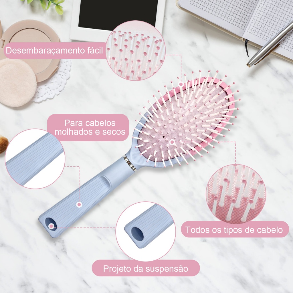 Escova Raquete Oval, Pentes de Massagem para O Couro Cabeludo com Almofada de Ar, Antiestáticos