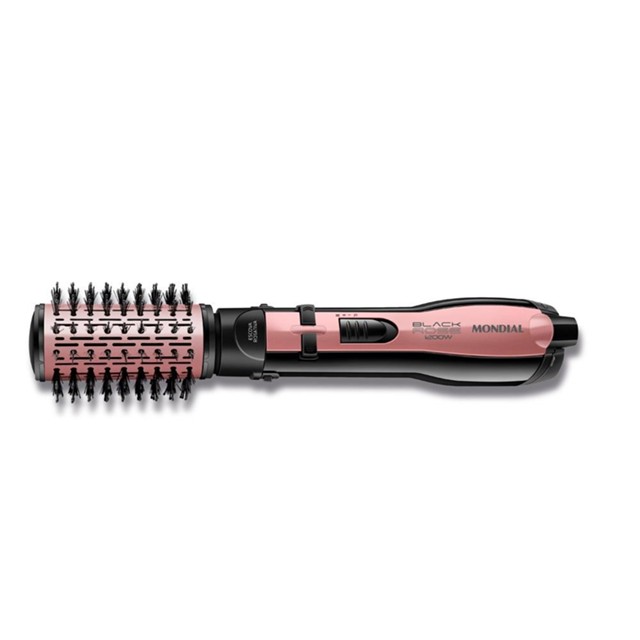 Conheça toda a praticidade que você vai conquistar com a Escova Rotativa Black Rose! Ela é 5 em 1: seca, alisa, modela, define cachos e finaliza franjas e pontas. Você pode produzir o visual que desejar e ainda vai ter um cabelo mais saudável, brilhante e sem frizz, graças ao revestimento cerâmico com Tourmaline Íon. A escova ainda vem acompanhada de 4 acessórios. Saiba mais sobre a ER-10 da Mondial: ESCOVA ROTATIVA MOTORIZADA: A escova Mondial une o movimento rotativo, parecido com a escovação, com o calor do secador. E tem duplo sentido de rotação: gira 360° nos dois sentidos, permitindo modelar o cabelo para dentro ou para fora. 5 EM 1: Com um único produto, você seca, alisa, modela, define cachos e finaliza franjas e pontas. Tudo isso de forma prática: utilize uma única mão e dê adeus ao malabarismo de usar escova em uma mão e secador na outra. SAÚDE DOS FIOS: CERÂMICA + TOURMALINE ÍON: A escova rotativa Mondial tem revestimento em cerâmica, que protege os fios e distribui o calor de maneira uniforme. Além disso, a tecnologia com Tourmaline emite íons, que fecham a cutícula dos fios e diminuem a eletricidade estática. O resultado é um cabelo com menos frizz e muito mais macio, brilhante e lindo! ACOMPANHA 4 ACESSÓRIOS: A escova rotativa é perfeita para alisar ou modelar os fios, além de finalizar pontas e franjas. Já o acessório ‘Bocal direcionador’ concentra e direciona o fluxo de ar, facilitando a secagem. A ‘Escova Modeladora’ é indicada para quem busca penteados mais elaborados, com fios cacheados ou pontas modeladas. E o ‘Difusor’ é ideal para secar cabelos cacheados, ondulados ou crespos, pois proporciona cachos definidos e sem frizz. ALTA POTÊNCIA: Os 1.200W promovem uma secagem rápida e eficiente. 3 TEMPERATURAS: Ajuste a intensidade de acordo com o seu tipo de cabelo e o resultado que deseja. CABO GIRATÓRIO 360°: Mais fácil de manusear: o fio da escova rotativa Mondial é giratório e não enrola durante o uso.