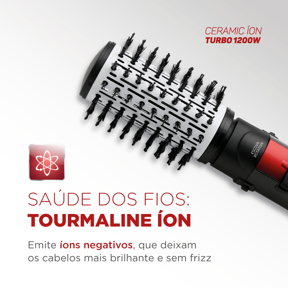 | Escova Rotativa Ceramic Íon Turbo, Mondial, Vermelho/Preto, 1200W, ... este produto | R$ 257,90 | 38% | 4.7/5 | — |