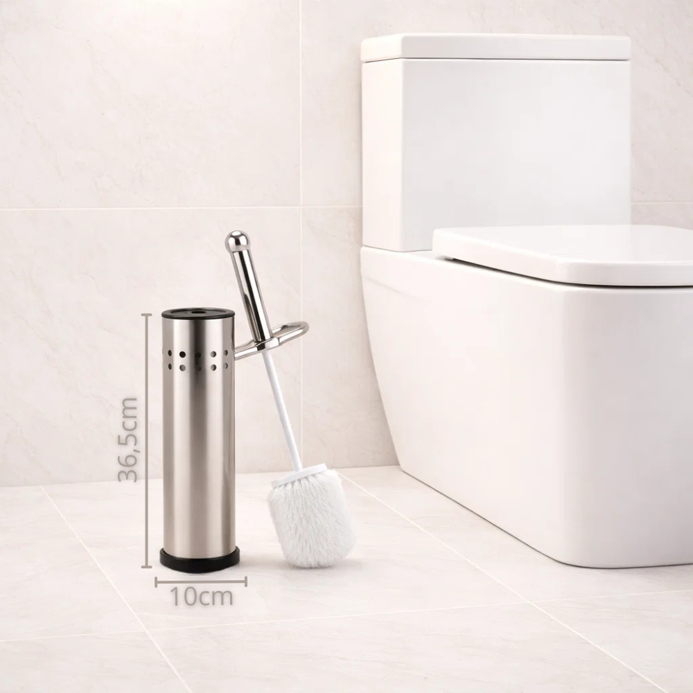 ✅ Envio imediato, produto à pronta entrega! A escova em aço inox é a forma mais prática e rápida de limpar seu banheiro, sem precisar esfregar tanto, sem sujeira, e sem enferrujar! INFORMAÇÕES DO PRODUTO: • Escova sanitária com cerdas flexíveis e resistentes; • Cabo e corpo da escova em aço inoxidável; • Suporte em aço inox com base emborrachada, não risca o piso; • Tampa do suporte em aço inoxidável, não enferruja; • Altura: 36,5m • Largura: 10cm CONTÉM: • 3 Escova sanitária com cerdas flexíveis • 3 Suportes em aço inox com tampa em inox e base emborrachada • Nota fiscal do produto GARANTIA: • Garantia do Produto de 30 dias.