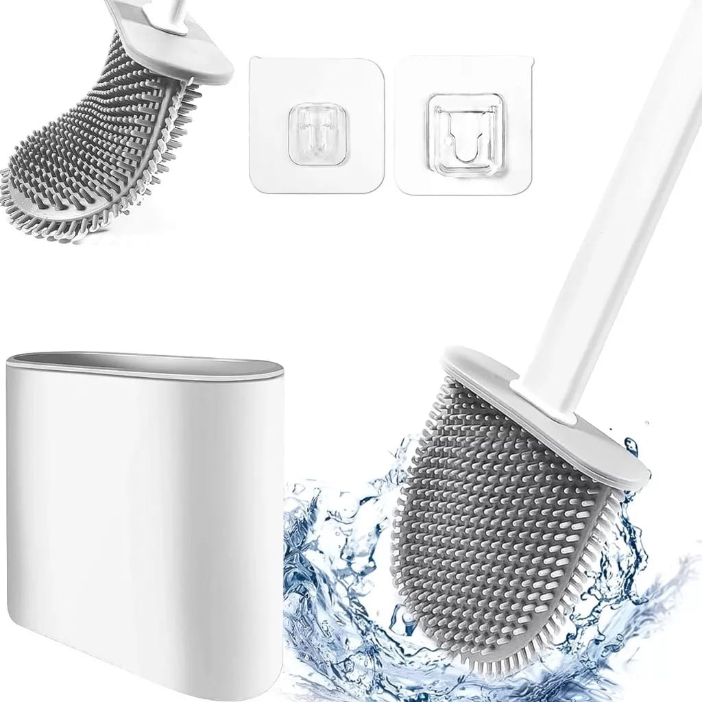 Escova Sanitária de Silicone com Suporte e Adesivo para parede - Limpeza Privada / Banheiro / Vaso Sanitário