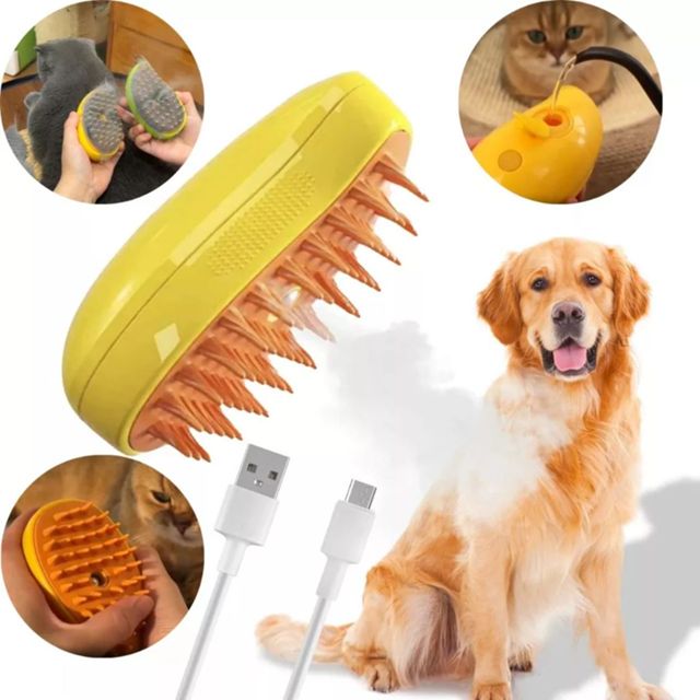 Escova Vapor Pet Elétrica 3 Em 1 Massagem Cães Gato Cachorro Tira Pelos Vaporizadora Recarregável