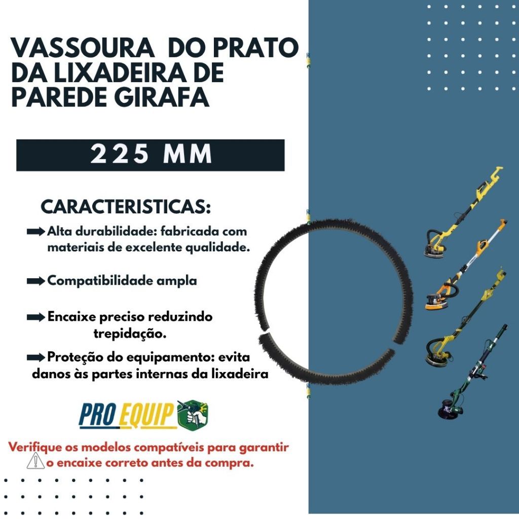 | Escova Vassoura 225mm para Lixadeira de Parede Girafa – Compatível ... este produto | R$ 72,99 | 8% | 4.8/5 | — |