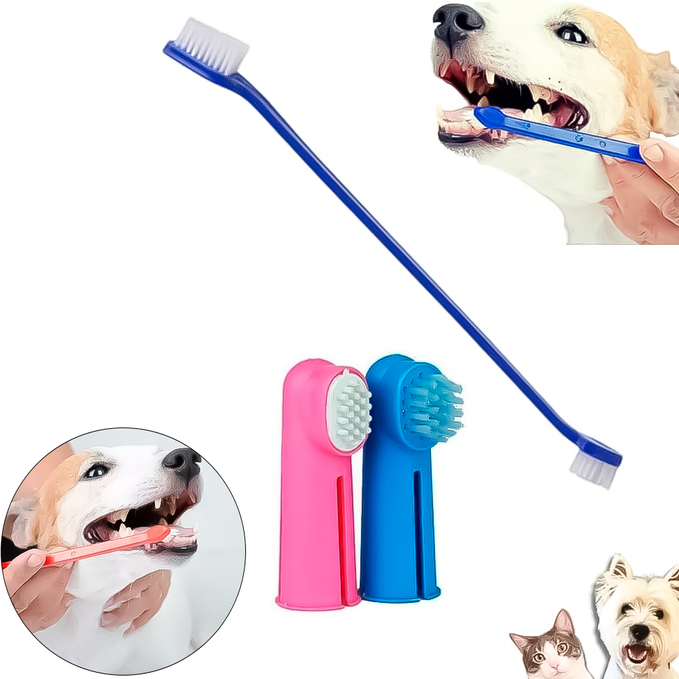 Escovas De Dente Plástico Para Cachorro Pet Gatos De Dedo 3 Peças Limpeza Animais De Estimação