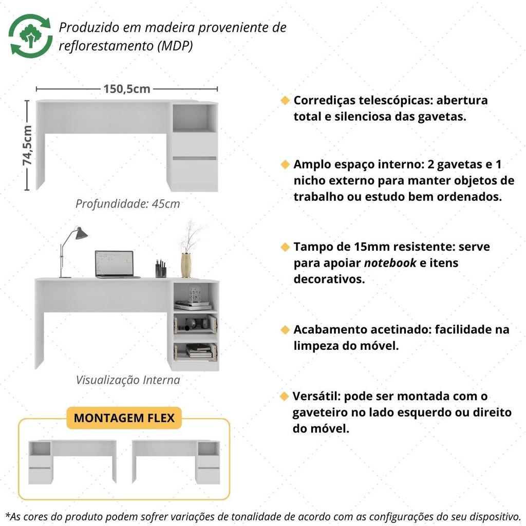Escrivaninha 150,5cm com Nicho e 2 Gavetas Flex Multimóveis MP6035