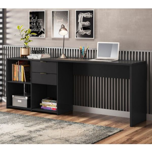 A Escrivaninha Office NT 2060 da Notável Móveis é um móvel completo que vai te auxiliar nas atividades do home office ou estudos. Com ela, você tem diversas possibilidades de montagem: de canto, montada reta, com o nicho para o lado direito ou esquerdo e você também pode escolher em que lado colocar as gavetas! O tampo de 25 mm é super espaçoso para você organizar itens essenciais ao dia a dia, e as gavetas possuem corrediças metálicas para guardar documentos e demais objetos. Um móvel moderno que vai atender as suas necessidades! Características: Material MDP de 15 e 25mm Pintura UV Nicho Puxador em PVC Corrediça metálica 2 Gavetas Pés: Plásticos, sapata 5mm Gaveteiro pode ser montado no lado direito ou esquerdo Tampo em 25mm Dimensões: Altura: 73,1 e 75,6 cm Largura: 90 e 200 cm Profundidade: 38,2 e 148,5 cm Peso: 48 kg Garantia do fornecedor de 3 meses. Recomendações do fabricante: Para maior durabilidade, recomenda-se que a limpeza dos móveis seja feita da seguinte forma: Nas partes externas (portas, laterais e frente de gaveta) e internas, a limpeza deverá ser feita com pano limpo e levemente umedecido em água e sabão neutro. Em seguida, deverá ser passado um pano limpo e seco. *Imagens meramente ilustrativas, tonalidades podem sofrer alterações. Objetos decorativos das imagens não acompanham o produto.