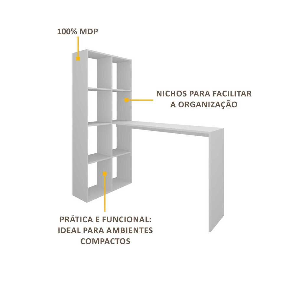 A Escrivaninha com estante lateral é a solução perfeita para quem busca organização e praticidade em um único móvel. Produzida em MDP, ela possui um acabamento em pintura UV que garante durabilidade e resistência. Sua estante lateral conta com 5 prateleiras, cada uma suportando até 2kg de peso, permitindo armazenar livros, documentos e objetos decorativos. Além disso, a mesa acoplada suporta até 13kg, proporcionando espaço suficiente para trabalhar ou estudar confortavelmente. Com design moderno e funcionalidade incomparável, essa escrivaninha é a escolha ideal para otimizar o seu ambiente de trabalho ou estudo. Conteúdo da Embalagem: 1 (uma) Escrivaninha com Estante Kit Ferragem Manual de Montagem Dimensões dos produtos montado: Estante - Altura: 149,5cm | Largura: 64,5cm | Profundidade: 25,5cm Mesa - Altura: 75,5cm | Largura: 135cm | Profundidade: 30cm *Você pode consultar as medidas detalhadas na imagem técnica do produto. *As cores do produto podem sofrer variações de tonalidade de acordo com as configurações do seu dispositivo. Imagem meramente ilustrativa. Decoração e eletros não acompanham o produto. O produto será entregue desmontado e não disponibilizamos o serviço de montagem.