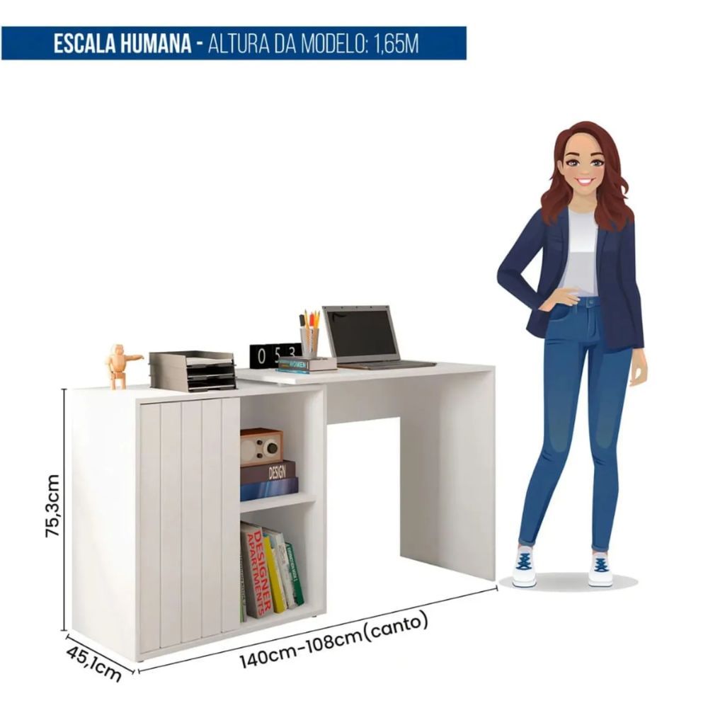 A Escrivaninha de Estudos Bisck Caemmun é ideal para quem busca praticidade, organização e um espaço confortável para estudos ou trabalho. Com design moderno e funcional, ela se adapta facilmente a diferentes ambientes, como quartos, escritórios ou home office. Produzida com estrutura resistente e acabamento de qualidade, a escrivaninha oferece durabilidade para o uso diário. Seu grande diferencial é a montagem flex, que permite adaptar a posição do módulo conforme a necessidade do ambiente, proporcionando mais versatilidade na organização do espaço. O modelo conta com amplo tampo de 1,40 m, ideal para acomodar computador, cadernos e objetos de uso diário, além de nicho e compartimentos organizadores, que facilitam manter tudo sempre ao alcance. * Pode ser montada para o lado direito ou esquerdo, de acordo com o layout do seu ambiente * - Fabricado em MDP de 15 mm, garante resistência e durabilidade e sua porta com ripado garante a organização de documentos, livros e pertences pessoais sendo ideal para você. Recomendações de limpeza: - Limpar com pano macio, seco ou úmido, sem uso de produtos abrasivos. Pois, podem trazer danos ao produto. Marca: Caemmun Modelo: Bisck Pintura: UV Prateleira: 1 Estrutura: MDP 15 mm, MDP 12 mm, MDF 6 mm, MDF 3 mm Estrutura: resistente Montagem: Flex (permite diferentes posições na montagem) Amplo tampo para: Estudos ou trabalho Nichos: Organizadores Design: Moderno e funcional - Peso Máximo Suportado: - Base 5 kg; - Tampos 15 kg; - Prateteira 1 kg. Dimensões Do Produto: - Altura: 75,3 cm - Largura: 140 cm - Profundidade: 45,1 cm - Peso: 25,5 kg * Garantia: 3 meses * ⚠️ Observações Importantes: - As imagens são meramente ilustrativas e não acompanham objetos de decoração e eletros. - Pode haver alguma diferença de tonalidade entre a imagem e o produto, por conta do tratamento de imagens e a calibração de cores da sua tela. - Confira as dimensões do produto no momento da compra e certifique-se de que passará normalmente por elevadores, portas, escadas e/ou corredores, evitando assim futuros desagrados ou imprevistos com a entrega do produto. - A Lojas MM não se responsabiliza por montagens e instalações dos produtos.