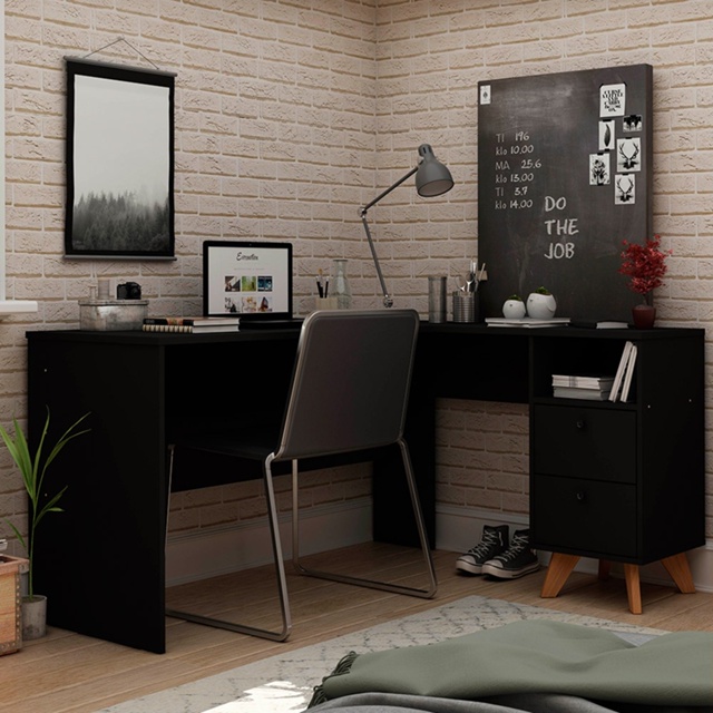 Escrivaninha Em L 2 Gavetas Havana Preto - Gelius